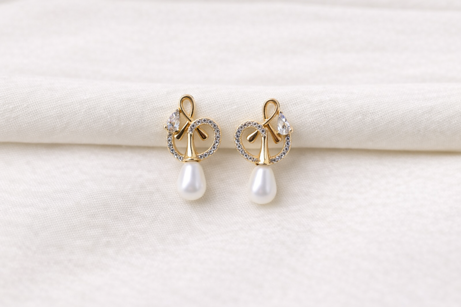 Crystal Knot Pearl Drop Earrings – Gold Finish (Anti-Tarnish)