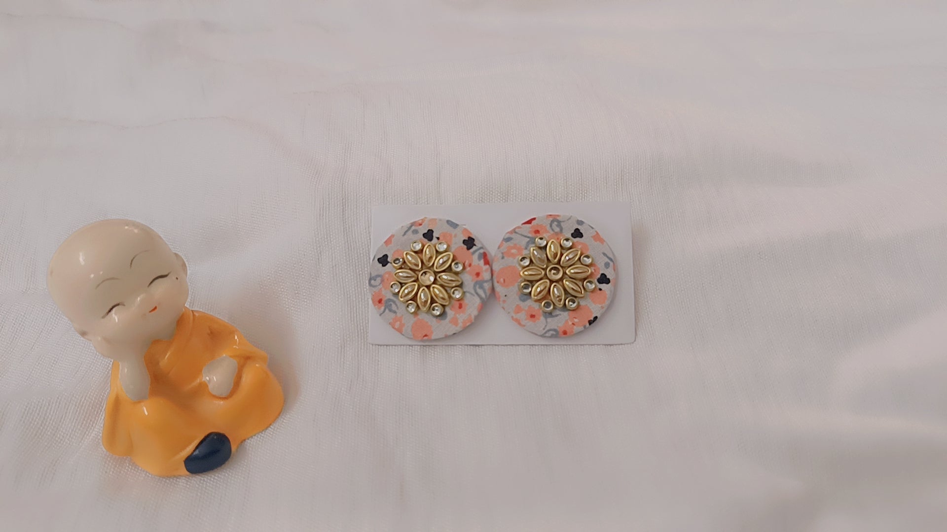 Floral Fabric Round Stud Earrings with Kundan Center – Cute Ethnic Fusion